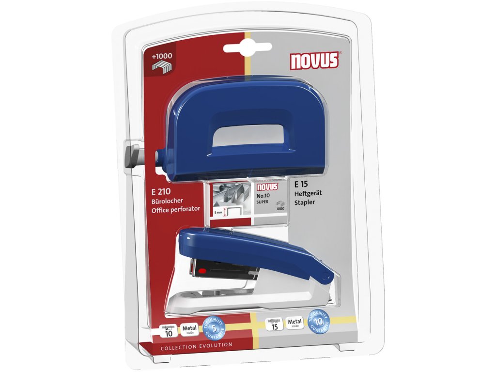 Sešívačka E15/děrovačka E210 15/10 listů Novus Twinset blistr