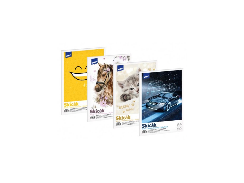 Skicák je trhací sešit nebo blok s čistými bílými listy (bez linky) - Udělejte si pohodovou chvilku s dětmi a nakreslete si nějaký pěkný obrázek do skicáku. Máme pro Vás širokou škálu poznámkových bloků, trhacích bloků, záznamových knih, a to dokonce v různých velikostech. Nezapomeňte si u nás zakoupit také voskovky, vodové barvy a štětce nebo pastelky.POUŽITÍ: