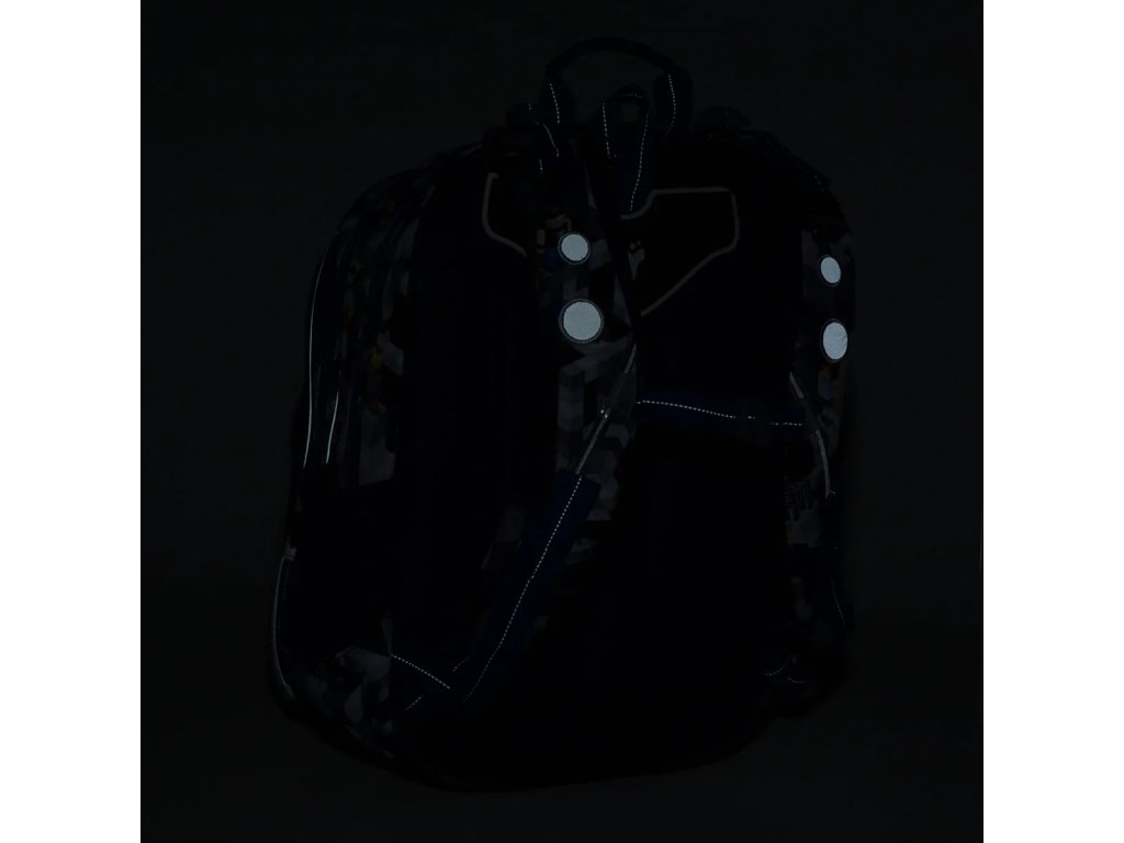 reflexní prvky: na čele a bocích batohu, na ramenních popruzích