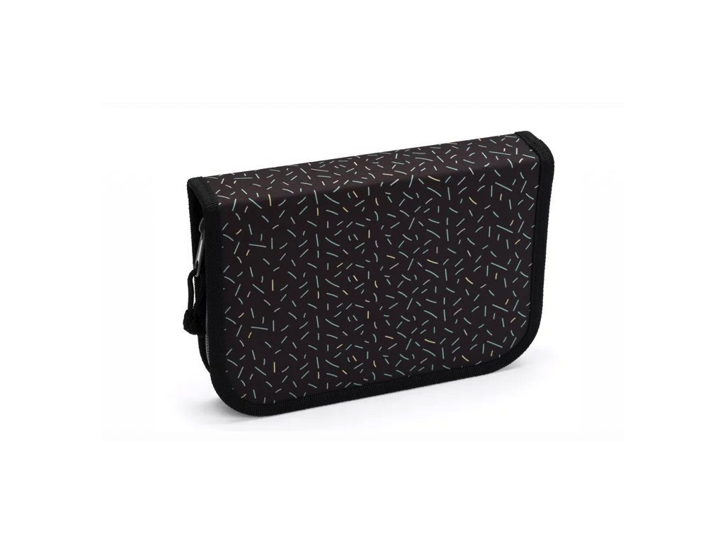 2. Školní penál jednopatrový, prázdný s dvěma chlopněmi, o rozměru š.19,5 x v.3,5 x h.13 cm