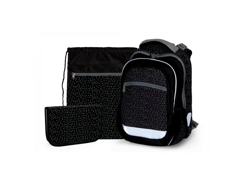 Školní set obsahuje:1. Školní batoh junior - kvalitní, ergonomicky tvarovaná odlehčený školní batoh je vybaven reflexními prvky a anatomicky tvarovanými zády s pevnou konstrukcí.