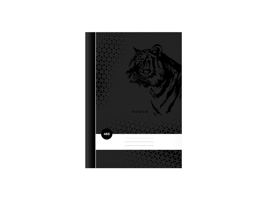 Školní sešit ve formátu A4, čtverečkovaný, v černé barvě, s motivem tygra, v deskách z křídového papíru.Typ: 465