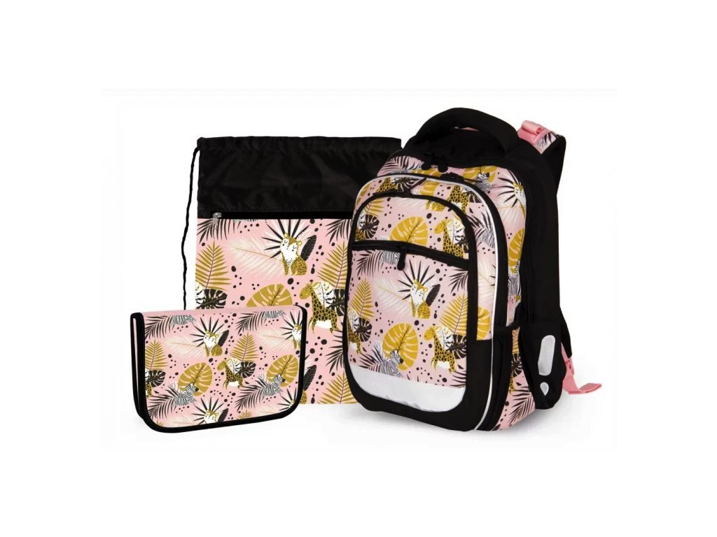 Školní set obsahuje:1. Školní batoh junior - kvalitní, ergonomicky tvarovaná odlehčený školní batoh je vybaven reflexními prvky a anatomicky tvarovanými zády s pevnou konstrukcí.