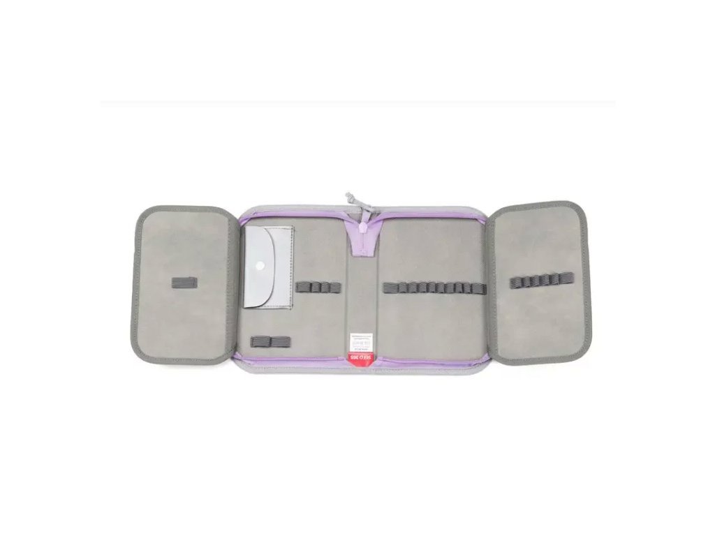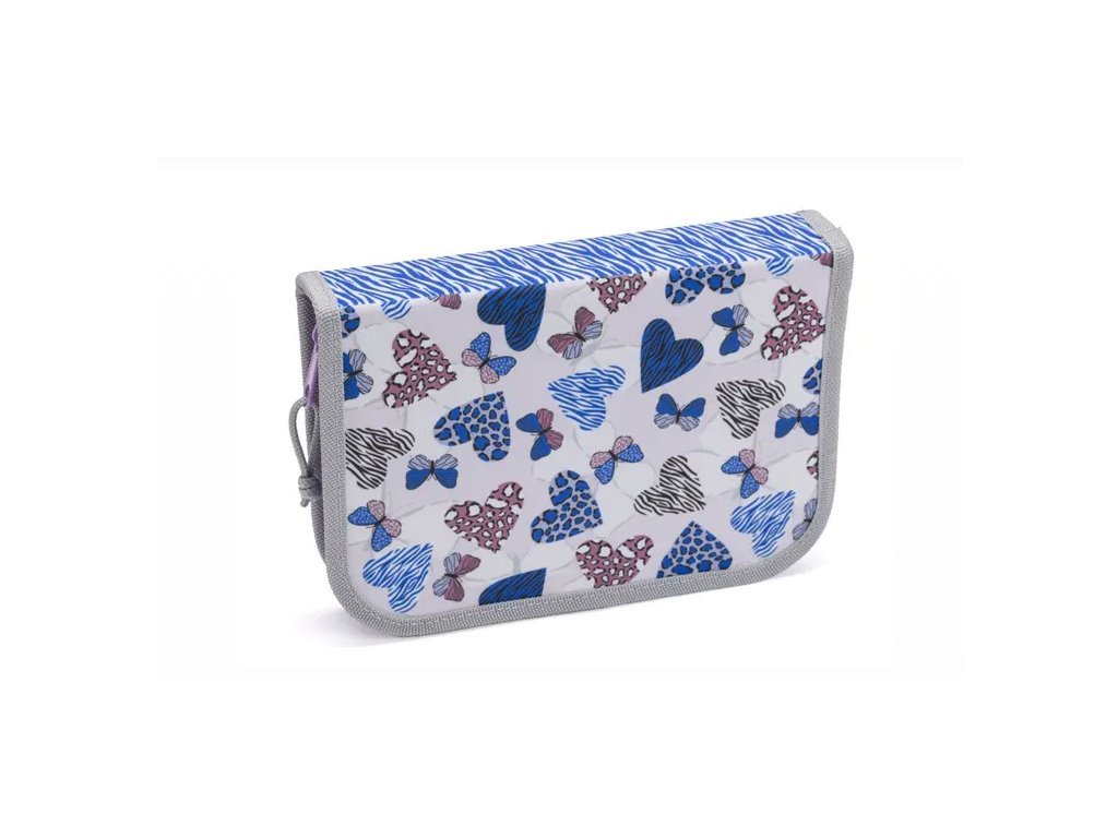 2. Školní penál jednopatrový, prázdný s dvěma chlopněmi, o rozměru š.19,5 x v.3,5 x h.13 cm