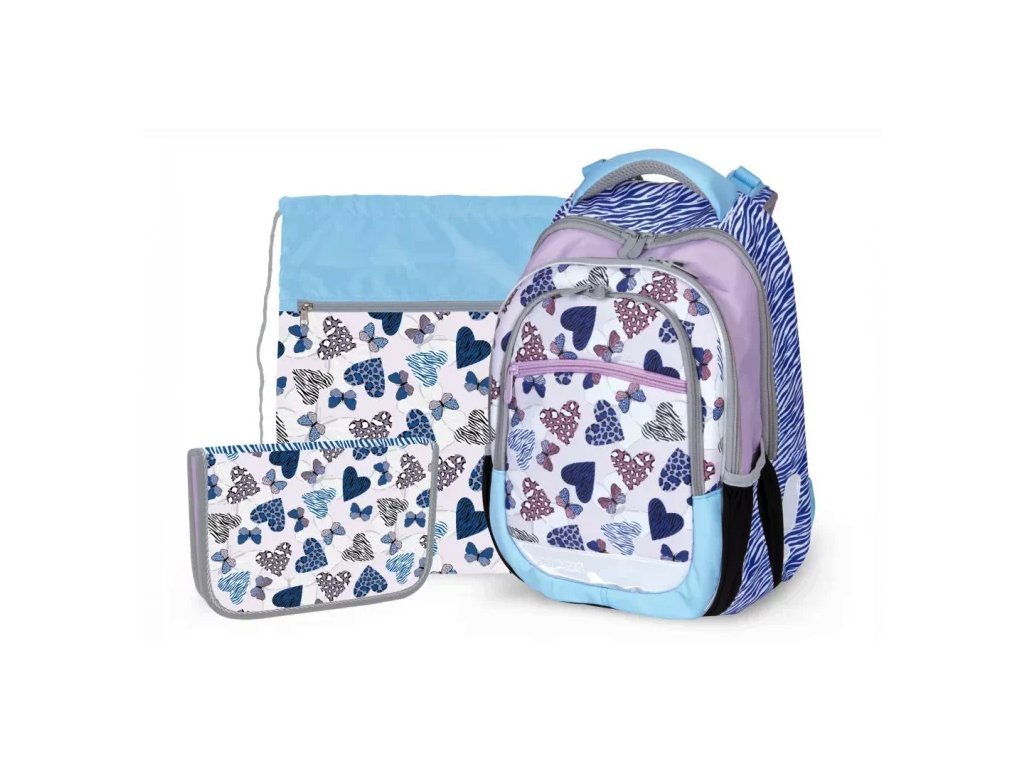Školní set obsahuje:1. Školní batoh junior - kvalitní, ergonomicky tvarovaná odlehčený školní batoh je vybaven reflexními prvky a anatomicky tvarovanými zády s pevnou konstrukcí.