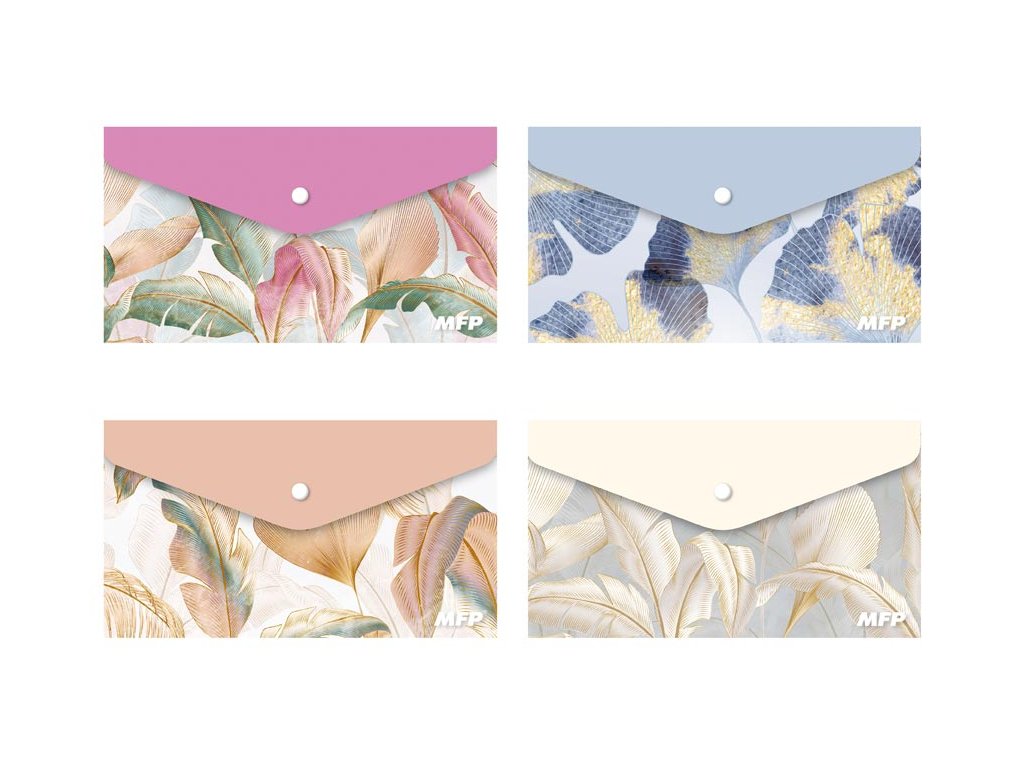 Odolný polypropylen (PP) zajistí ochranu před vlhkostí a opotřebením, zatímco rozmanité designy dodají složce jedinečný styl. Praktické zapínání na druk udrží všechny dokumenty pohromadě a snadno dostupné, kdykoli je budete potřebovat.