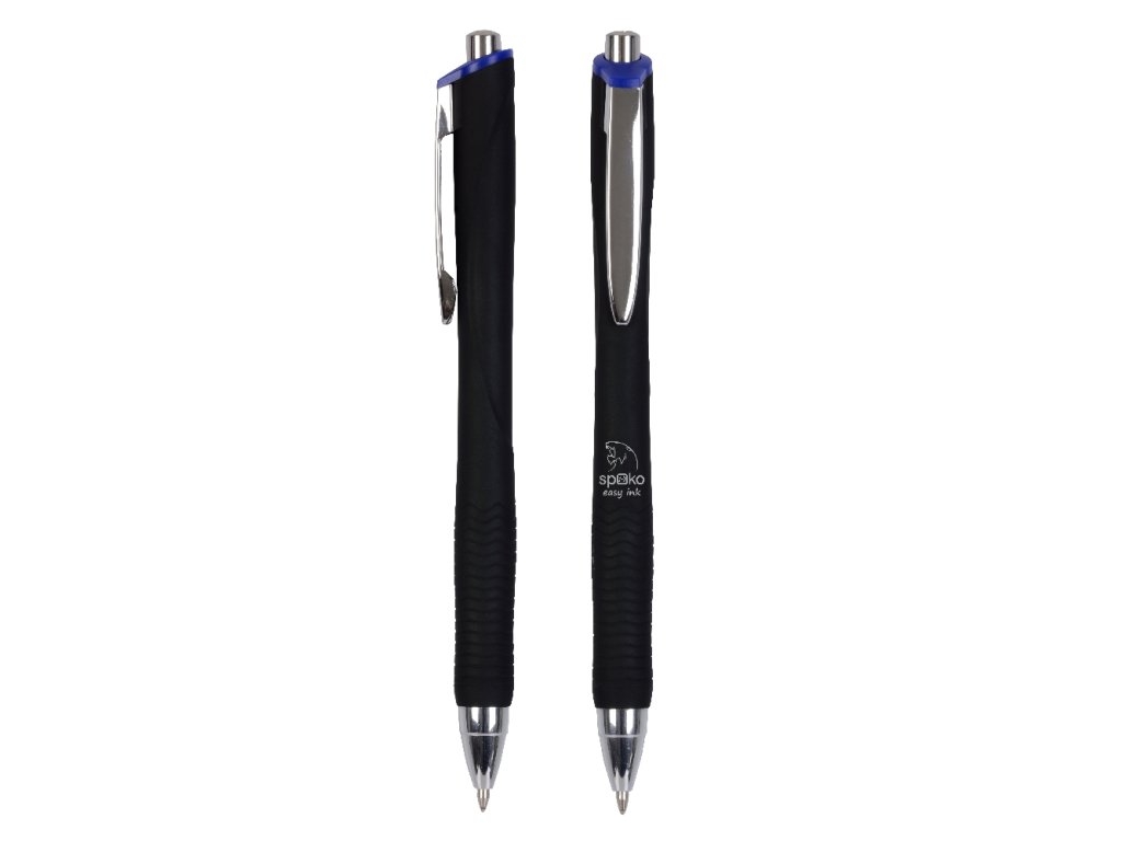 Elegantní stiskací kuličkové pero v matné povrchové úpravě s kovovým klipem a tvarovaným pogumovaným úchopem s drážkami. Speciální náplň Easy Ink – inkoust s nízkou viskozitou pro pohodlnější a plynulejší psaní.černé tělo v kombinaci s modrou