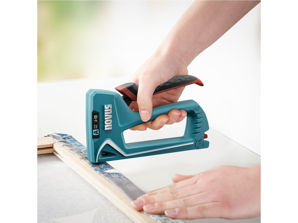 Nová generace sponkovaček v moderním vzhledu a jedinečné barvě „Novus Tools blue“. Inovativní design s povrchovou úpravou „structure powder“, která zvyšuje odolnost výrobku. Výrazné logo a značení usnadňuje identifikaci modelu a použitelnosti sponek.Kompaktní sponkovačka s všestranným využitím při domácích a hobby pracích. Vysoká kapacita jemných sponek typu A, spodní plnění zásobníku. Ergonomická a uzamykatelná rukojeť s bezpečnostní pojistkou a měkkým povrchem pro maximální pohodlí. Kontrolní okénko pro rychlý přehled kapacity spon. Linka na čelní straně sponkovačky, pro maximálně přesné usazení sponky do materiálu.