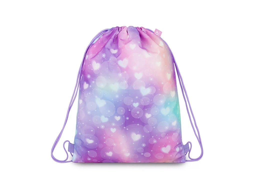 Sportovní vak se srdíčky v pastelových barvách. Lehoučký parťák, který rozzáří každý školní den i odpolední kroužek..Stylový, praktický a neuvěřitelně lehký. Tento vylepšený sportovní vak – gymsack se srdíčkovým motivem je ideální volbou pro kroužky, hodiny tělocviku i na víkendové výlety za dobrodružstvím.