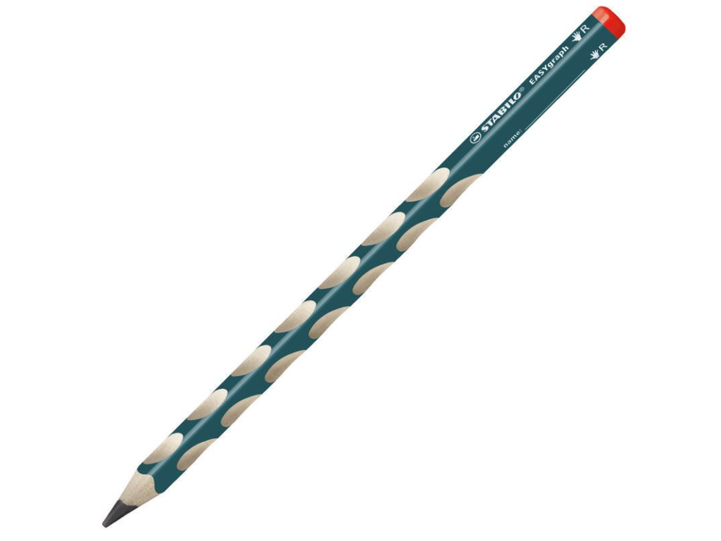 Ergonomická trojhranná grafitová tužka, navržená speciálně ve variantě pro praváky. Díky svému provedení je vhodná pro děti, které začinají se psaním.trojhranné tělo a neklouzavé plošky pro uvolněné držení, které intuitivně navedou ke správnému úchopu