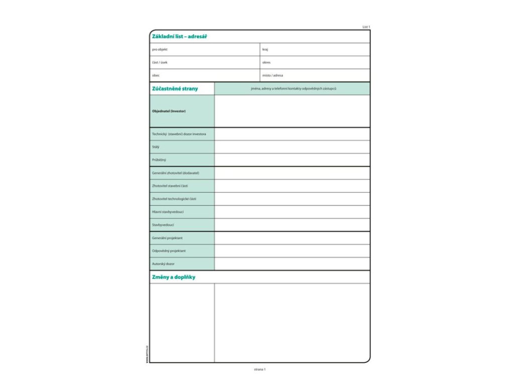 slouží k dennímu vedení záznamů o všech důležitých skutečnostech od odevzdání staveniště, zahájení až po ukončení stavbysamopropisovací