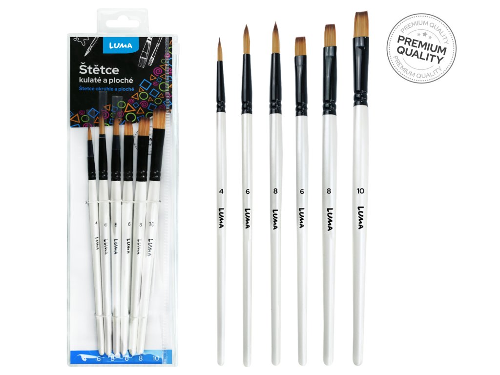 Štětce kulaté + ploché syntetické sada 6 ks LUMA