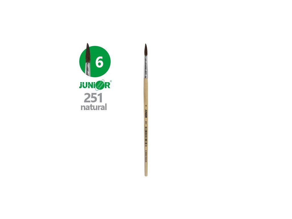 Kulatý štetec od značky JUNIOR, kategorie NATURAL.Velikost štětce je 6, což znamená že délka štetiny je 172 mm.