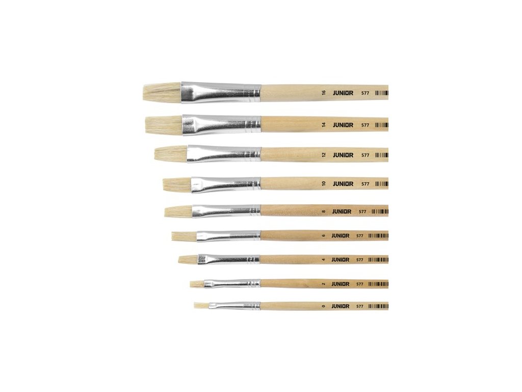 Štetec plochý od značky JUNIOR, kategorie NATURAL.Velikost štětce je 12, co znamená že délka štetiny je 245 mm.