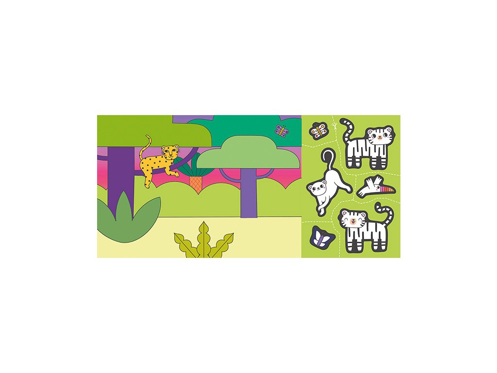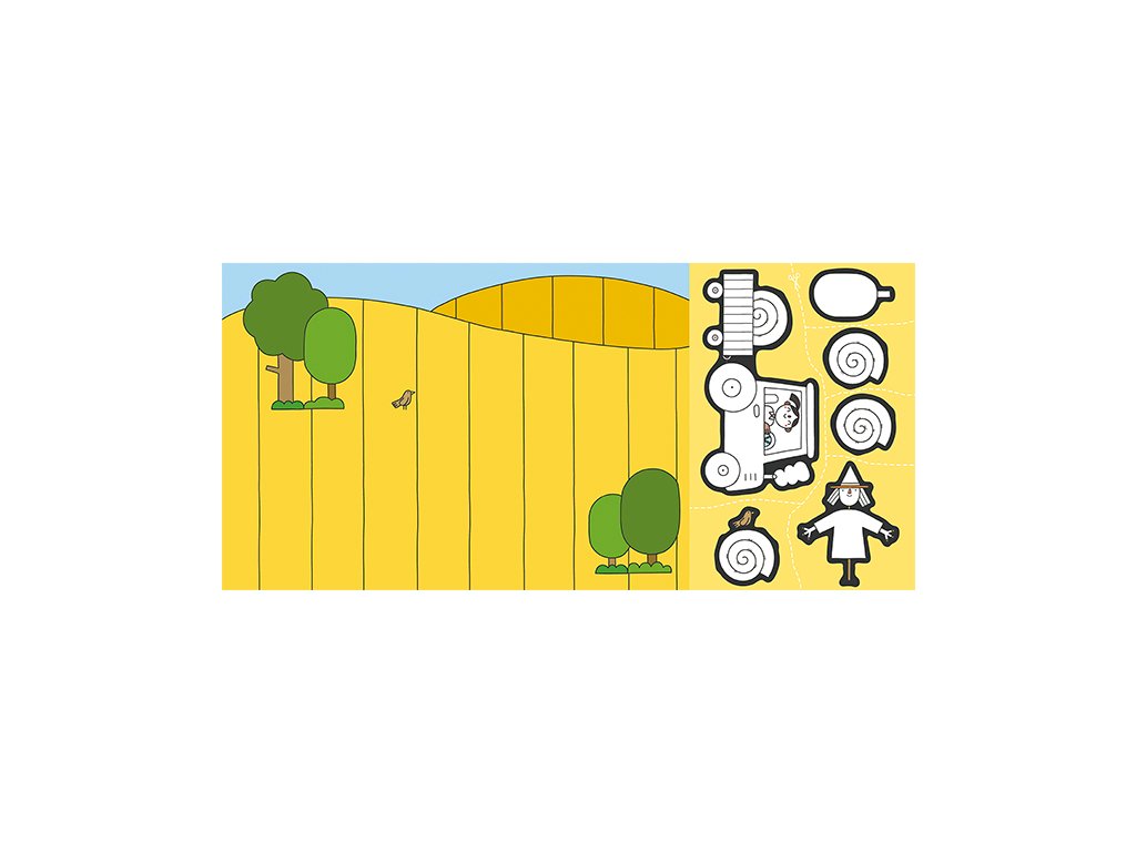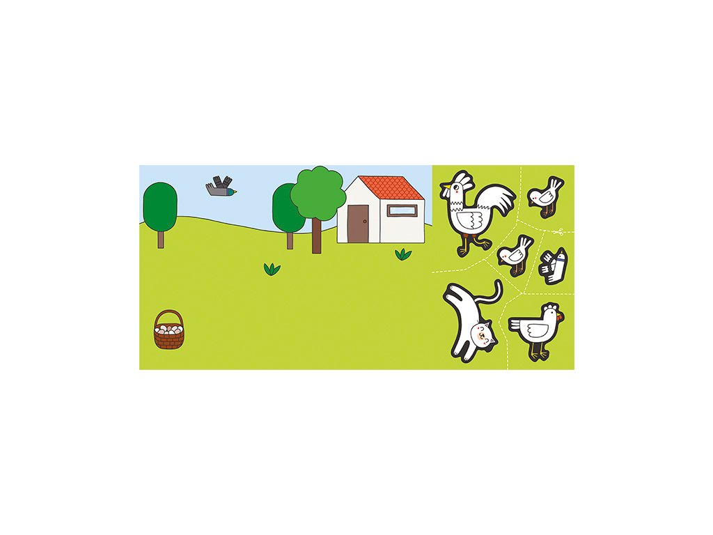 Titul obsahuje 8 složených obrázků s barevným pozadím a oddělitelným listem s obrázky k domalování, vystřižení a dolepení na barevné pozadí.Velikost produktu (260 x 188 x 7 mm)