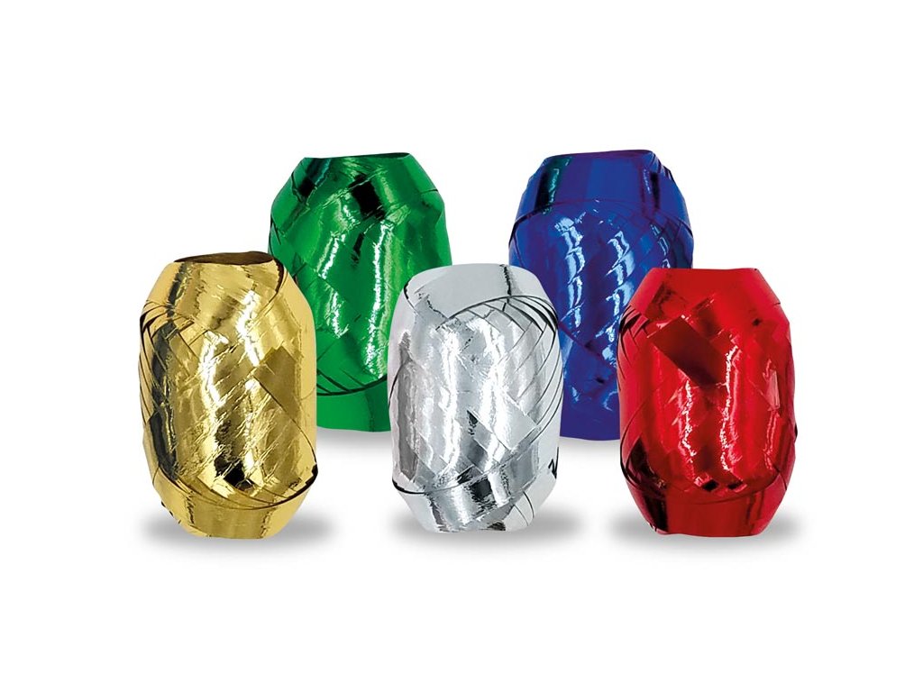 Vázací stuha metalická v mixu 5 barev. Vhodná k balení dárků nebo vázání květinPřetažením konců stužky přes nůžky můžete vytvářet nádherné lokny a stuhu různě zakroutit. Díky tomu bude Váš dárek nádherně naaranžovaný.