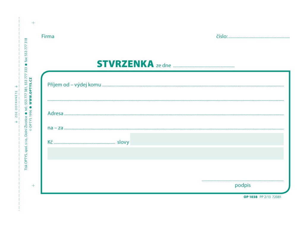 obsahuje 100 listů odtržitelných perforací, se zakládacím děrováním