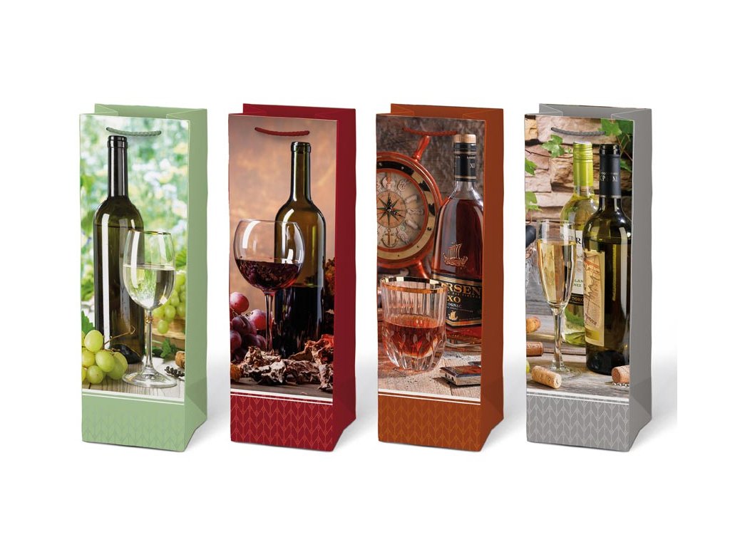 Dárková papírová taška T12 v mixu motivů, každý s elegantním a atraktivním designem. Je vhodná pro různé druhy lahví, nejen pro víno. Lze ji použít i pro likéry, oleje, nebo jiné nápoje v lahvích. Tato stylová taška je opatřena pevným uchem pro snadné a pohodlné nošení. Použití dárkové tašky eliminuje potřebu složitého balení. Darujte lahev originálně a elegantně.Motiv: mix motivů