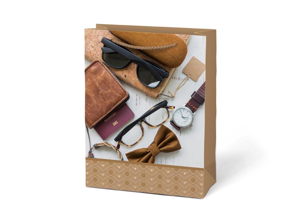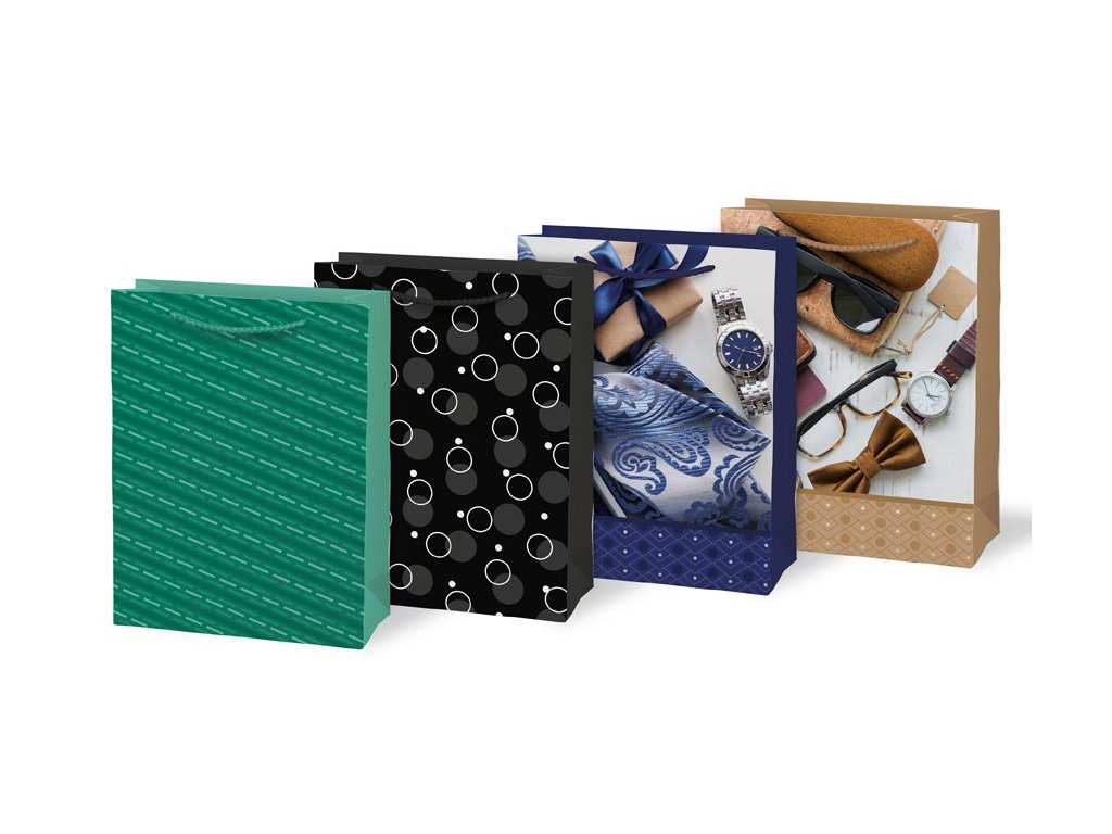 Papírová dárková taška T4 v různých pánských motivech a barvách. Taška je vybavena uchy pro snadné přenášení a je vhodná pro různé příležitosti jako jsou narozeniny, svátky, svatby, nebo jiné speciální události. Pohodlná ucha jsou z pevného materiálu, která zajišťují snadné přenášení. Dejte svým blízkým najevo, že Vám na nich záleží, a darujte jim dárek v elegantní a stylové tašce.Rozměr: 190mm x 250mm x 90mm (Š x V x H)