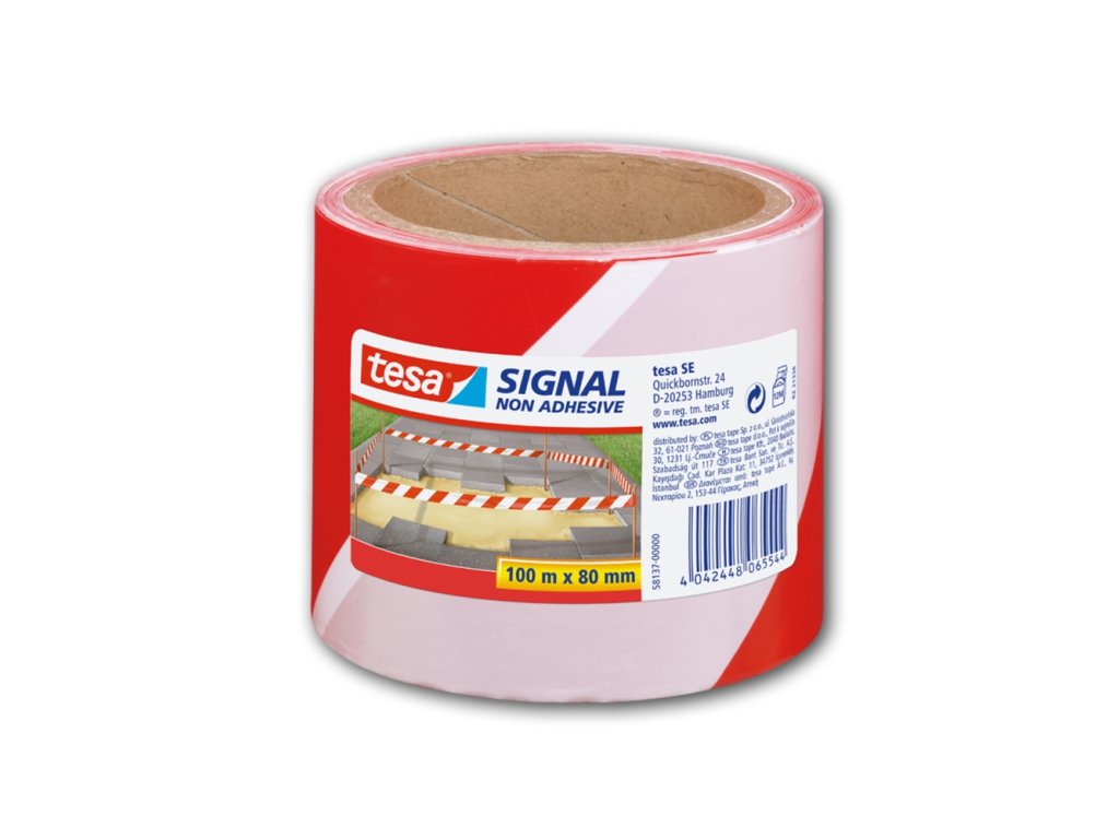 Tesa bariérová výstražná páska bez lepidla 100 m x 80 mm PE červená/bílá