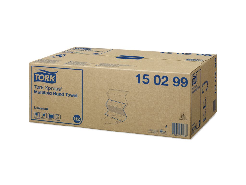 Tork Xpress® H2 systém, skládané papírové ručníky, 2 vrstvý recykl, pevné ručníky základní kvality, 4740 ks v kartonuVlastnosti produktu:
