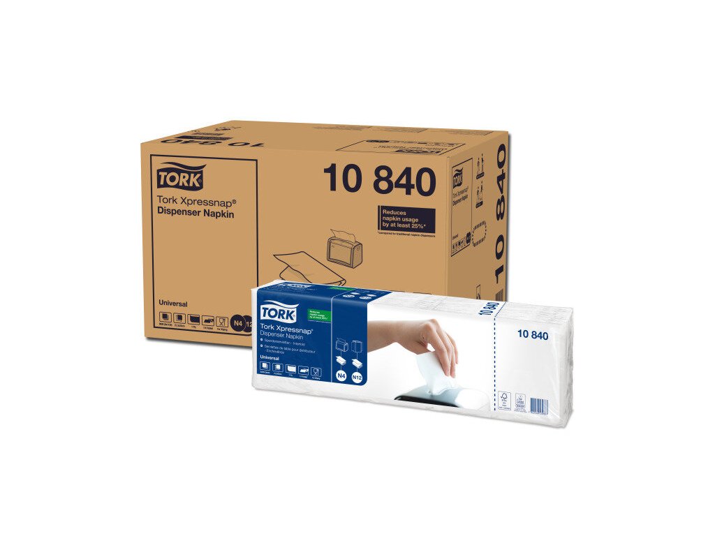 Jednovrstvé bílé ubrousky určené do zásobníků Tork Xpressnap® se systémem dávkování ubrousků po jednom kusu (Tork systém N4). Snižují spotřebu ubrousků až o 25% v porovnání s tradičními ubrousky do zásobníku, Universal kvalita, 9000 ks v kartonu, 100% celulózaDoplňkové parametry