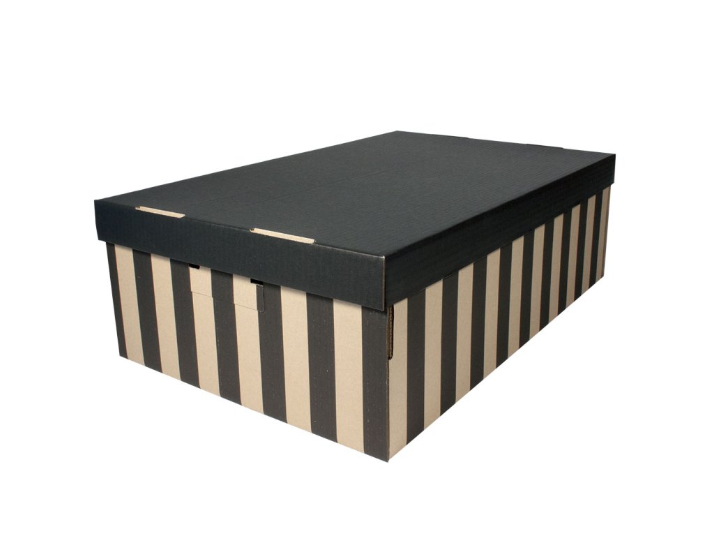 Úložná krabice s víkem vyrobena s kvalitní vlnité lepenky vhodná pro ukládání všeho od dokumentů, katalogů přes oblečení nebo dětské hračky. Úložna krabice s pevným dnem zajistí bezpečnou přepravu a uložení Vašeho obsahu. Vyříznuté úchytky na obou stranách usnadňují zvedání a přenášení krabice. Rozměr 560 x 370 x 180 mm. Nosnost 10 kg. Balení obsahuje 2 ks. Cena za balení.Doplňkové parametry