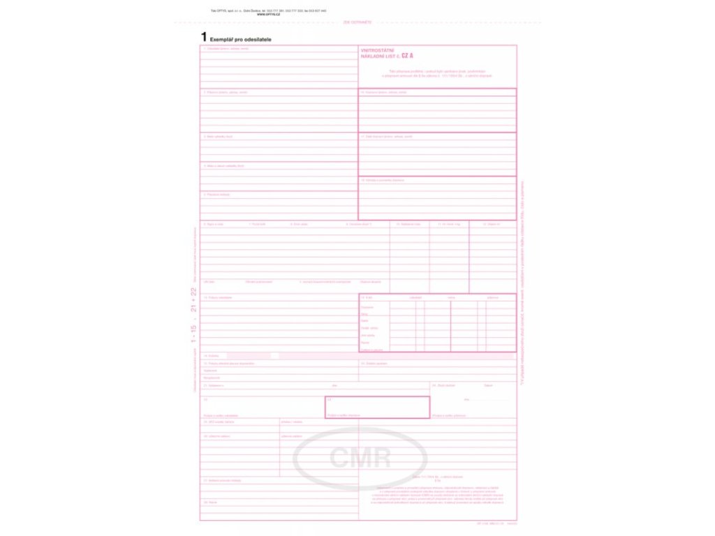 CMR list pro vnitrostátní přepravu