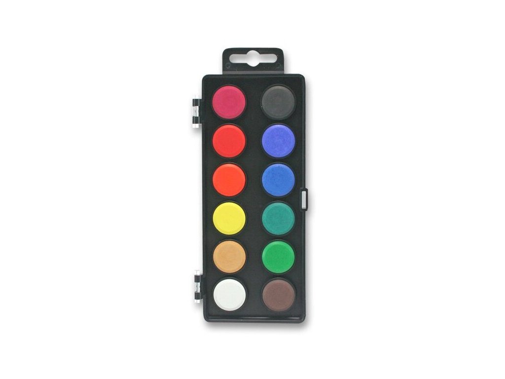 Školní vodové barvy 12ti odstínů s tabletami o průměru 22,5 mm v obdélníkových, plastových, jednopatrových barevnících s transparentním víčkem. Barvy jsou výrazné, vyznačují se svým vysokým obsahem pigmentů. Jsou certifikované a zcela bezpečné pro děti.Doplňkové parametry