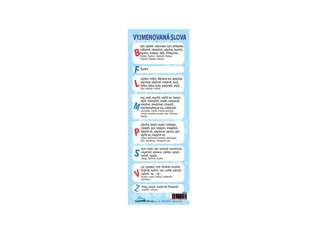 Vyjmenovaná slova, záložka