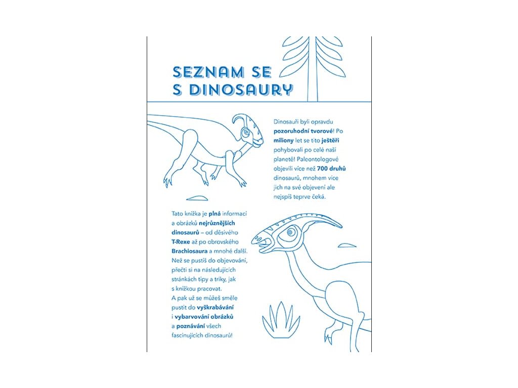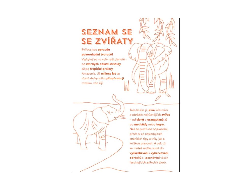 Titul obsahuje 56 stran plných škrabacích obrázků, omalovánek a zajímavých informací a dřevěné rydlo k vyškrabávání.Velikost produktu (225 x 153 x 20 mm)