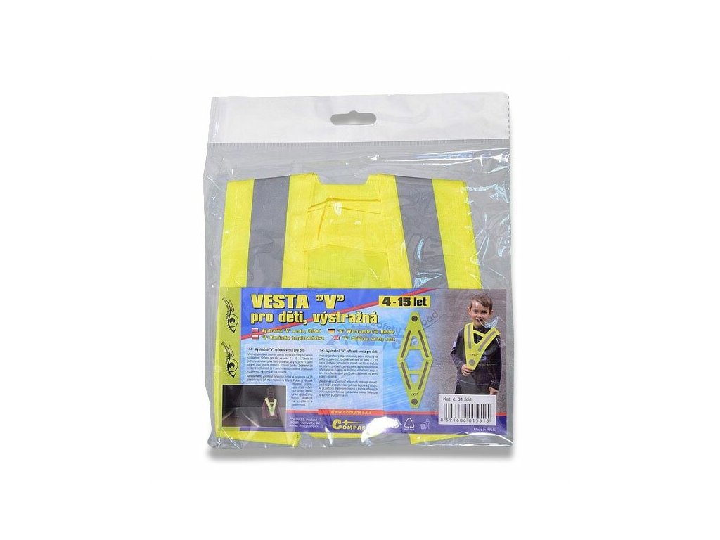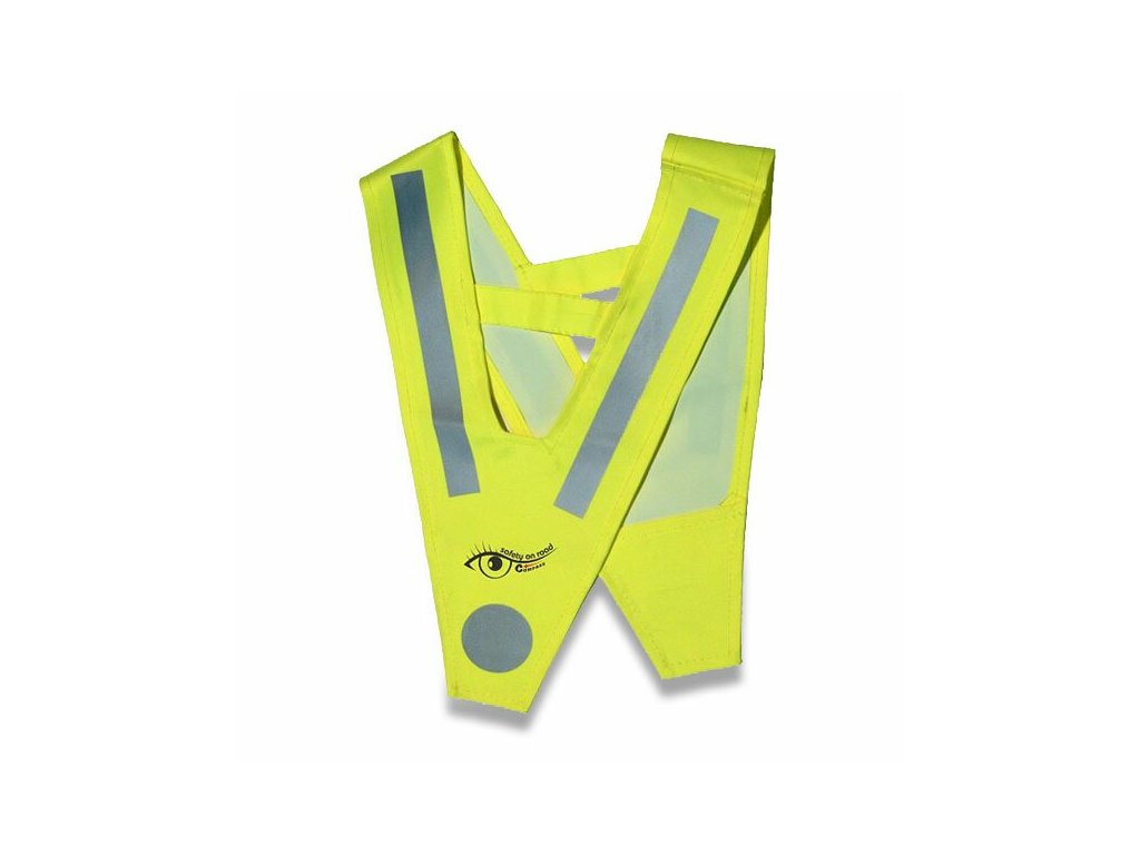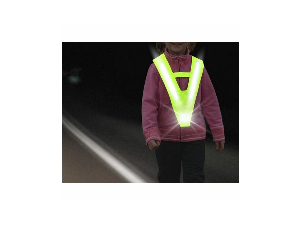 Výstražný reflexní doplněk oděvu ve tvaru V pro zvýšení pasivní bezpečnosti. Jednoduše se nasadí přes hlavu dítěte tak, aby na přední i zadní straně byly dobře viditelné reflexní prvky. Dobrá viditelnost na velkou vzdálenost. Za snížené viditelnosti či v šeru několikanásobně prodlužuje vzdálenost, na kterou lze dítě spatřit.Pro děti ve věku 4 - 15 let.