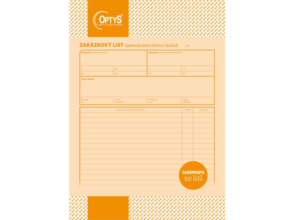 obsahuje 100 listů odtržitelných perforací, se zakládacím děrováním