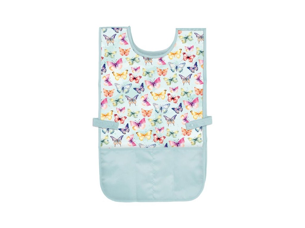 Lehkost, barvy a kreativita v jednom!Dětská zástěra s motivem barevných motýlků přináší kouzlo hravosti do každé činnosti. Díky dvěma úrovním zapínání na druky po stranách se snadno přizpůsobí a dokonale padne. Pohodlné oblékání přes hlavu umožní dětem snadno si ji obléknout i svléknout. Praktické kapsy ve spodní části poslouží na štětce, pastelky nebo jiné drobnosti, které je třeba mít po ruce. Odolný a snadno omyvatelný materiál zajišťuje, že zástěra vydrží i ty nejkreativnější nápady.