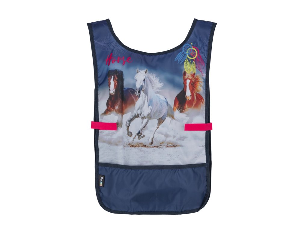 Rozměr: 160x255x20mm, Hmotnost: 0,097kgZástěra pončo do výtvarné výchovy či na jiné tvořící aktivity. Oblékání přes hlavu a po stranách zapínání na suchý zip. Vpředu jedna prostorná kapsa. Materiál 100% polyester.