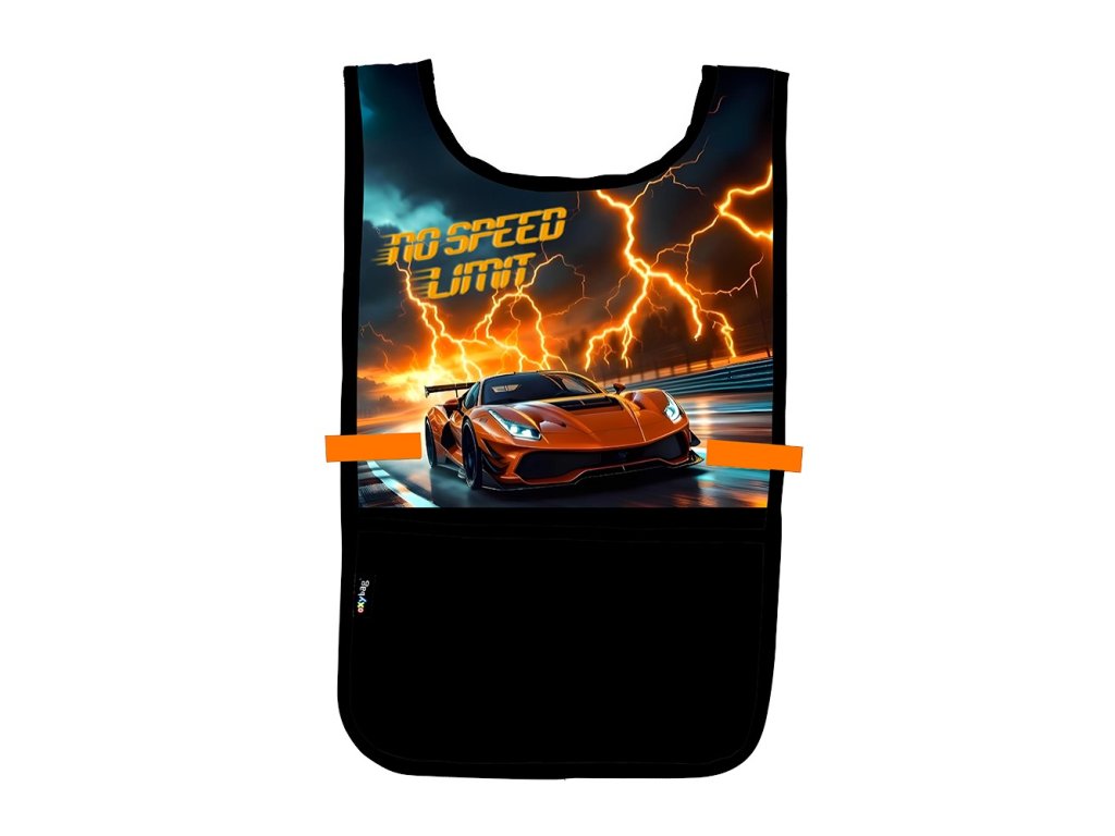 Zástěra pončo do výtvarné výchovy či na jiné tvořící aktivity. Oblékání přes hlavu, po stranách zapínání na druk. Vpředu jedna prostorná kapsa. Materiál 100% polyester.
