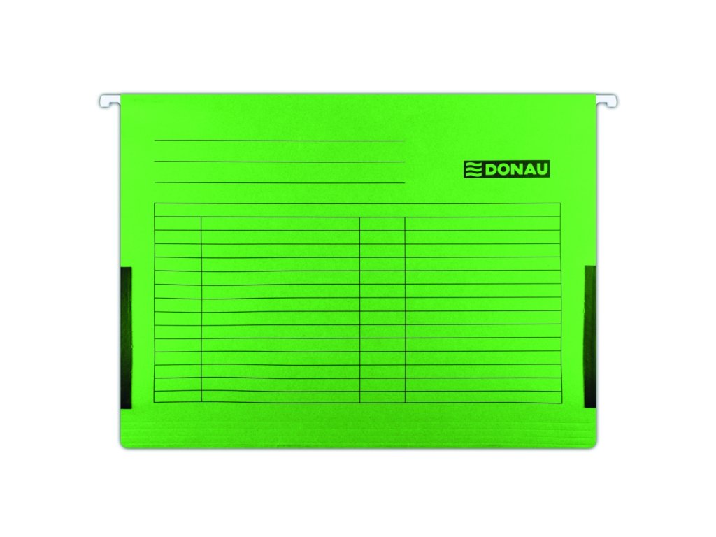 Závěsné desky do kartotéky k evidenci a uchovávání dokumentů. Pevná kovová lišta uvnitř prodlužuje životnost výrobku. Předtištěná tabulka umožňuje přehledný popis po celé ploše. Desky obsahují pohyblivé plastové jezdce s výměnným štítkem. Boční textilní záložky fixují dokumenty uvnitř složky.na dokumenty formátu A4