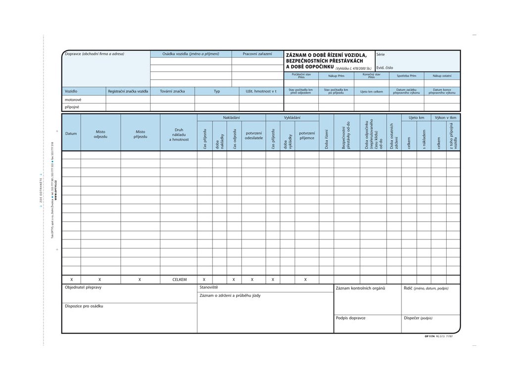 Záznam o době řízení vozidla a bezpeč. přestávkách Karbon A4, 100 listů