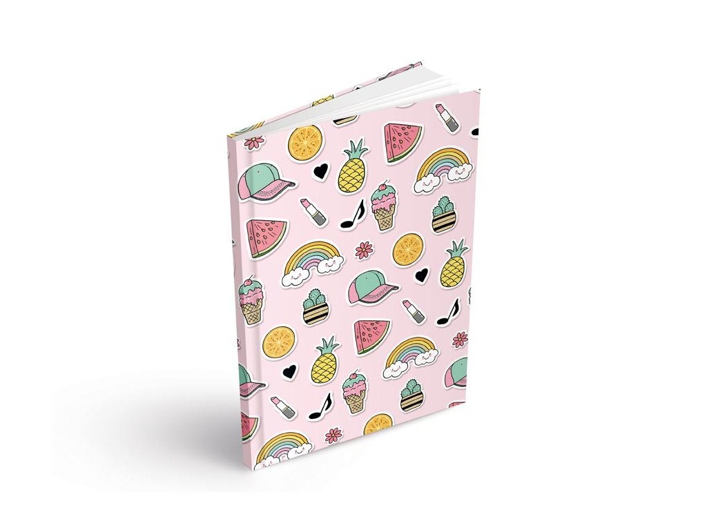 Záznamní kniha MFP ve formátu A6, linkovaná, s motivem veselých a hravých symbolů léta a zábavy jako jsou melouny, ananasy, zmrzliny, duhy, kšiltovky, rtěnky a další. Je perfektním společníkem pro každodenní poznámky, zápisky nebo kreativní nápady. Díky kompaktním rozměrům ho snadno uložíte do kabelky či batohu, takže ho můžete mít vždy po ruce. Díky vazbě V8, známé svou mimořádnou pevností, zůstanou stránky bezpečně na svém místě i při častém používání.Formát: A6