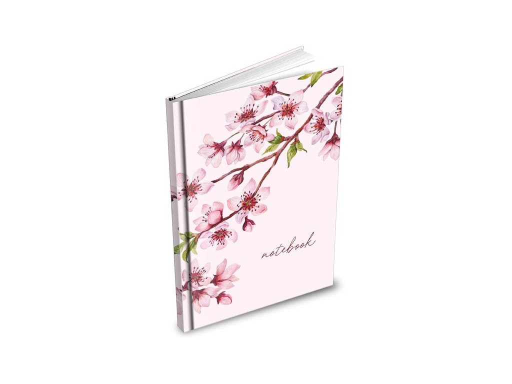 Záznamní kniha A6 100 listů linka větvičky s růžovými květy