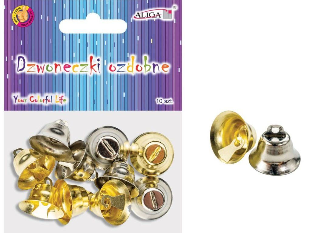 Zvonečky stříbrné a zlaté 2 cm 10 ks