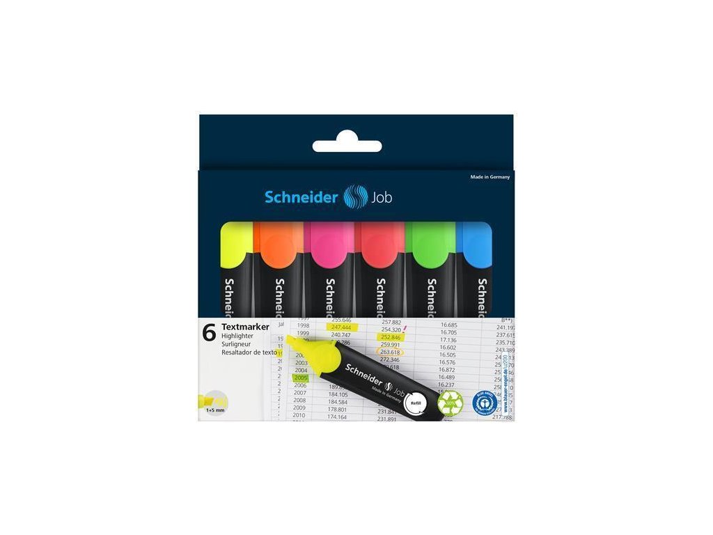Zvýrazňovač "Job 150" SCHNEIDER 1-5 mm sada 6 barev